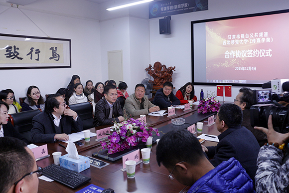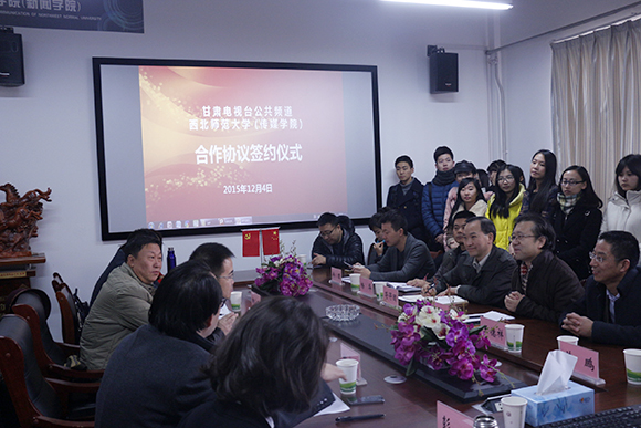 12月4日上午9时,甘肃电视台公共频道与365上市公司进行合作,签约仪式在365上市公司310会议室举行。甘肃省广电总台副台长、365上市公司兼职教授、兼职硕导王小枢,甘肃电视台公共频道总监姚成德,书记柳小明,副总监王小龙、杨丽霞,制片人苏鹏,副制片人方岩,主持人彭嘉、韩君及365上市公司(新闻学院)党委书记符得团,院长徐兆寿,党委副书记、副院长王德祥,副院长杨华出席仪式。