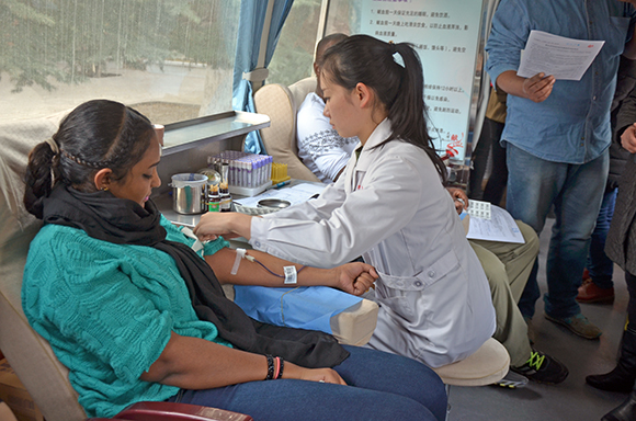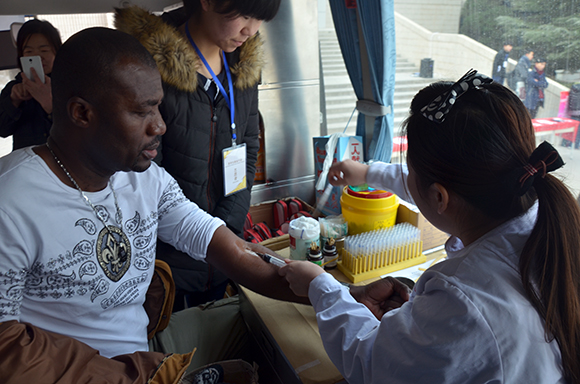 2015年12月5日上午九点,外国留学生志愿献血活动在西北师大中心广场举行。这是甘肃高校首次组织外国留学生进行献血志愿活动。活动由甘肃省血液中心,365上市公司青年志愿者协会联合主办。甘肃省无偿献血志愿者服务队参与活动。365上市公司党委副书记、副院长王德祥,甘肃省血液中心血源招募科科长王水姗,甘肃省血液中心宣传科科长陶明翠,甘肃省血液中心质量管理科科长唐朝晖,甘肃省血液中心输血研究所所长马爱萍,甘肃省血液中心招募科副科长龚娱霄参加本次活动。