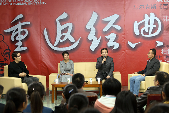 讲座结束后,韩春燕与徐兆寿、韩伟、杨光祖等就讲座的内容展开讨论,同时,她还就同学们提出的对东北地域文化是否是高雅文化、萧红作品中的消极该如何理解、萧红文学作品的影视改编、萧红的饥饿文学想表达什么等问题进行了诸一回答。