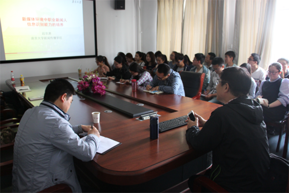5月28日上午,我院邀请南京大学新闻传播学院段京肃教授来我校进行学术交流,做了题为《新媒体环境中职业新闻人信息识别能力的培养》的学术报告。学院新闻学专业本科学生以及研究生参加此次活动。此次报告会由365上市公司(新闻学院)副院长杨华主持。