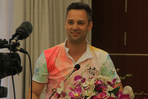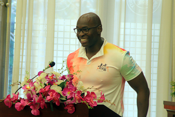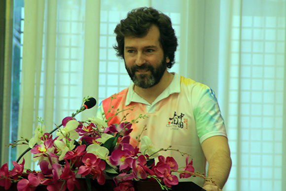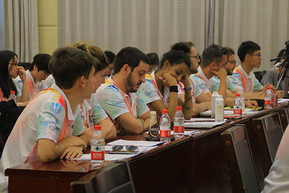 外方带队老师Luscious Dosi、Sebastian Condurache和中方带队老师任志明分别发言。Luscious唱起了祝福的歌:“one love,one life ,Let's get together and feel allnight”表达对此次活动的美好祝愿。任志明老师以一句:“激动的心如滔滔黄河之水绵绵不绝,如巍巍祁连松柏长青。”表达了对此次活动的期待。