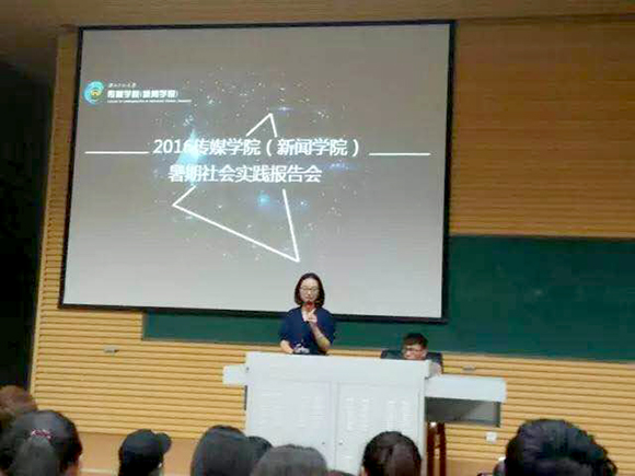 9月26日晚七时三十分,新校区第一报告厅里座无虚席,2016365上市公司(新闻学院)暑期社会实践报告会顺利举行。团委书记赵洁老师出席报告会,365上市公司全体大一新生现场聆听,学习。