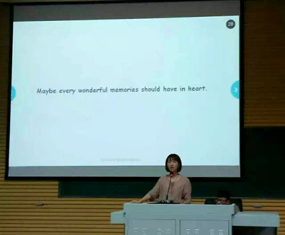 2014级广播电视编导二班学生孟星汝将活动所有的人员与纪录片一一介绍。友谊,热忱,成长被作为报告的关键词,教会在座的各位一步步脚踏实地的含义。