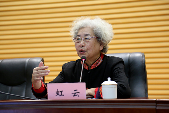 中央电视台著名朗诵家虹云老师作专题讲座。她说,“言为心声,语言是思维的外壳”,播音练习就是在“练心”。讲座以让各位学员提问题,然后互相讨论,虹云老师解释回答的方式进行。她从层次结构、语句分析、归纳主题三个方面讲文段的分析理解,以联想、“真听真看真感觉真说”讲朗诵者本身的体验感受。就朗诵与朗读的区别,虹云老师做出解读,从而让学员思考语文教学的方式与发展。她认为在功利思想严重的今天,朗读教育的自由化、朗读比赛的举办的公平化更应该被提上日程。虹云老师严肃批判了朗读的形式主义对学生思维的束缚性,强调朗诵必须“玩儿真的”。