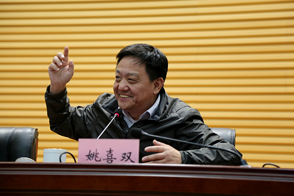 教育部语言文字应用管理司司长姚喜双教授首先讲解朗诵发声发音的技巧,并概括为“四三二一”。他讲到,四是发声运气需要四个字:深、匀、通、活;三是表达“三抓”,抓重点、抓整体、抓本质;二是“寻找制高点,加强对比度”;一是感情这一核心,要有真情实感。讲授过程中,他以大量例证,用不同的方式现场朗诵,使在座的同学们清晰地感受到了气息的调整、情绪的递进等技巧对于朗诵的重要性。最后,他深情朗诵曹操的《观沧海》与《龟虽寿》结束讲座。姚教授的细致讲解,让在坐的学员了解到发声的专业知识,也为大家在日后的学习和实践过程中提供了宝贵经验。