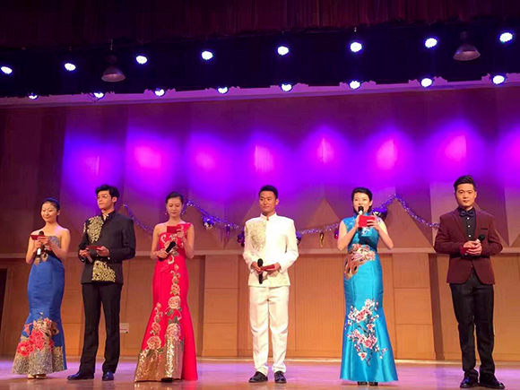 晚会在2016级播音与主持艺术班全体同学的歌曲串烧《给我一个吻》中结束,整场晚会体现出了我院学生的热情,在舞台上展现了自己的青春风采。 学院播音与主持艺术班三个年级的六名同学主持晚会。
