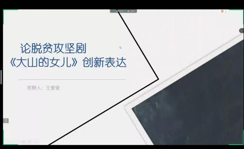 第五组王爱爱同学的论文题目是《论脱贫攻坚剧<大山的女儿>创新表达》,她从创作背景、叙事策略、传播效果对影片进行了细致的解读。
