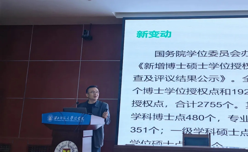 首先,石培龙从“当前形势、学院大礼包、准备工作”三方面进行了宣讲,分析了国家新增研究生学位点、研究生招生规模扩招的政策和考研利好形势,介绍了学院为考研学生开设专门的考研自习室、提供复习过程中专业课的咨询服务等考研大礼包,提醒学生提前做好查阅备考书目、招生简章等准备工作。