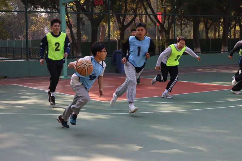 比赛进行到下半场。本科生队及时调整了状态,他们在防守端加强了逼抢,使得研究生队的进攻陷入困境,屡屡在进攻端错失良机。而本科生队也抓住了这一节研究生队体力和注意力的下降的问题,在进攻端不断制造威胁,频频利用对方的失误得分。此消彼长下,本科生队追上了比分,将比赛的悬念留到了最后一节。
