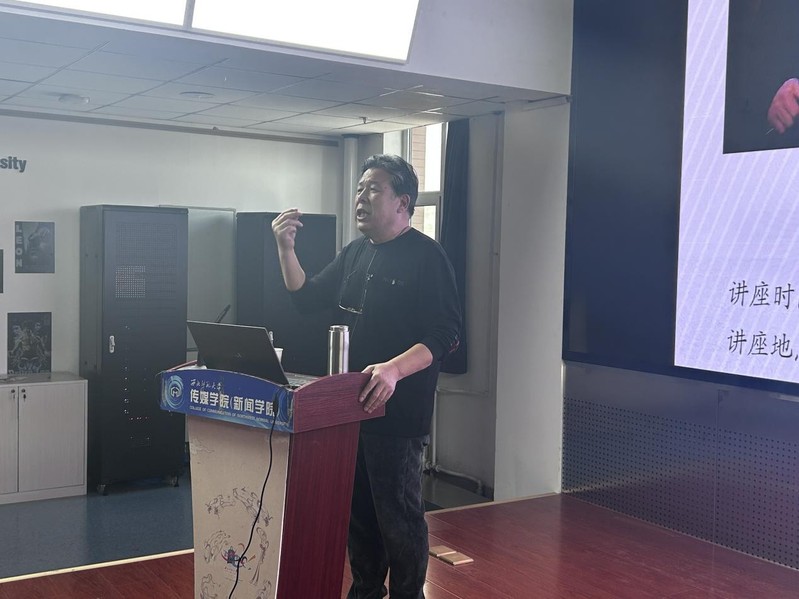 接着,临溪结合自身丰富的工作经验,向学生们深入分享了播音技巧的精髓。他强调,播音不仅是一项技术,更是一门艺术。播音员不仅需要具备扎实的语言功底和技术能力,更要用心体会文字背后的情感,避免被文字所束缚,寻找并维持身体最放松的状态,以此实现情动于内、声发于外。临溪指出,播音员要提升业务能力,除了通过阅读书籍、报纸等途径深化理论学习之外,更要勇于投身实践,在实践中不断尝试与探索,经历声音从不自然到自然的蜕变,进而实现个人能力的螺旋式上升。