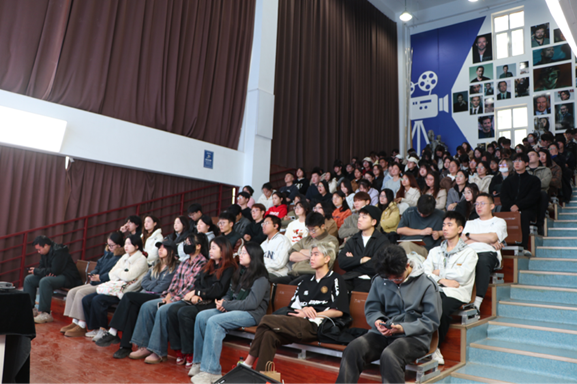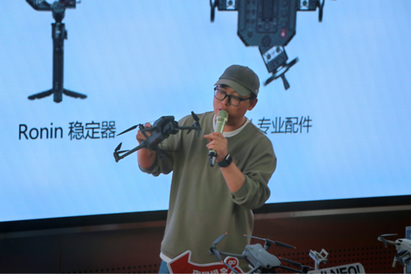 活动伊始,大疆工作人员向在场师生介绍了大疆企业的发展历程。自 2006 年成立以来,大疆一直致力于影像领域的深耕细作,现已发展成为无人机行业的领军企业。接着,工作人员向同学们讲解了大疆的产品分类及其特点,航拍无人机以其易上手、操作简便的特点,成为了许多同学记录生活、创作作品的得力助手;手持摄影设备则凭借其轻便小巧、易于携带的优势,为低成本制作提供了更多可能性;而商用产品则广泛应用于公共安全、农业、新闻报道等多个领域,展现了其强大的适用性。