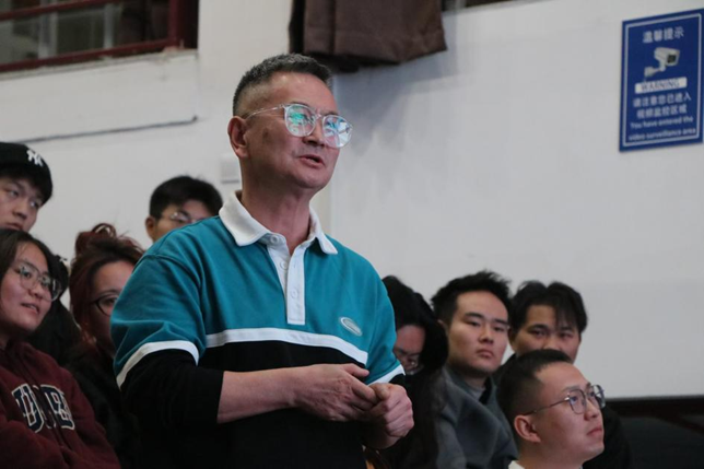 影片放映结束后,导演史安平与现场观众就影片内容及创作心得进行了深入交流。针对同学们对于影片主题的提问,史安平表示,电影聚焦于刻画“尽职”与“尽孝”矛盾下的人物心路历程,通过描摹“选择”困境下人物的内心挣扎,引发观众的情感共鸣。到场的各位老师也针对影片发表了自己的观点。冯晓临表示,影片剪辑节奏紧张,而拍摄节奏相对松弛,这使得影片质感略显不足。林恒高度赞扬了导演对于剧本的把控能力,对于影片纪录片式的影调风格也给予高度评价。