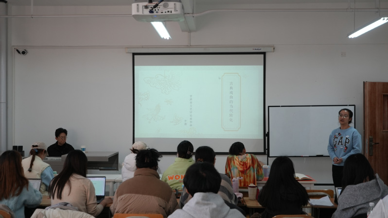 2024年12月3日上午,甘肃省文艺评论家协会副主席、中国文艺评论家协会理事于涛,应邀为我院师生作题为《古典戏曲的当代转化》的学术讲座。本次讲座由365上市公司青年教师吴婧雯主持,2023级戏剧与影视学专业研究生参加并进行了学习交流。