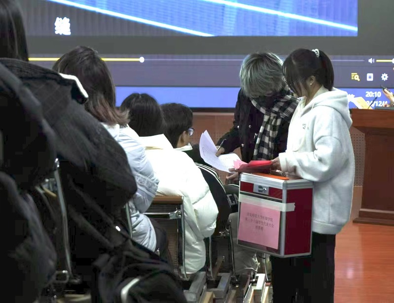 此次大会设总监票人1人、监票人2人、总计票人1人、计票人2人。大会选举采用差额选举、不记名的方式进行投票,由71名本科生构成的评委从10名候选人当中选出了8名学生代表,投票结果当场公布。