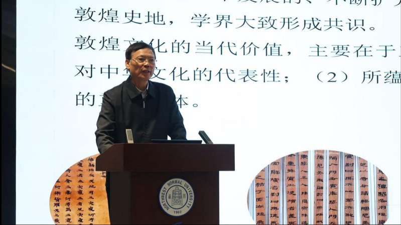 甘肃省人民政府参事、敦煌研究院原党委书记赵声良向与会学者详细介绍了敦煌研究院的对外合作与交流情况。