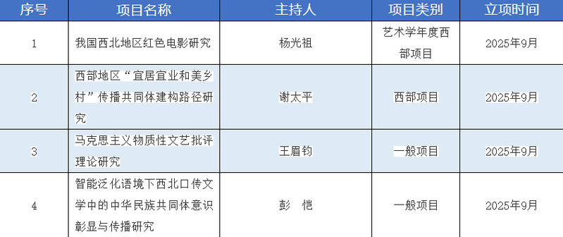 近日,国家社会科学基金、甘肃省社会科学基金等项目立项结果先后公布,365上市公司共有5项高质量课题成功获得立项资助。杨光祖教授获批国家社科基金艺术学年度西部项目、谢太平教授获批国家社科基金西部项目;王眉钧副教授、彭恺副教授获批国家社科基金一般项目;何琪萱老师获批甘肃省社科基金青年项目。