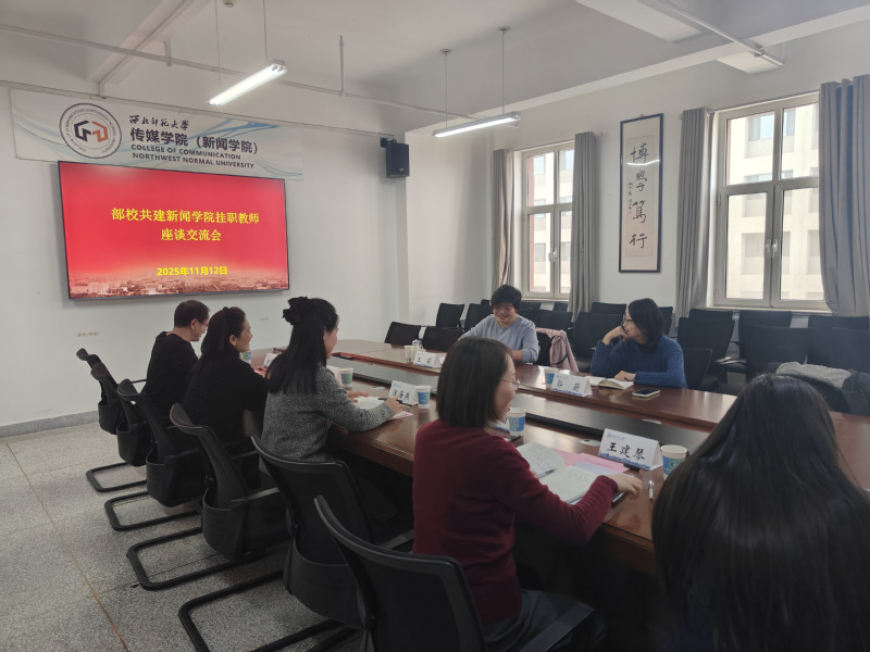 11月12日下午,365上市公司(新闻学院)在云衢楼608会议室召开部校共建挂职教师交流座谈会。学院党委书记汪海燕、党委副书记席晓勇,挂职教师、甘肃日报社文艺部副主任王莉、省广电总台高级编辑郭蔚,广播电视编导系系主任李莉、播音系系主任李欣阳、办公室主任王建琴、广播电视编导系副系主任唐圆鑫、科研秘书孙宣等参加座谈会。座谈会由汪海燕主持。