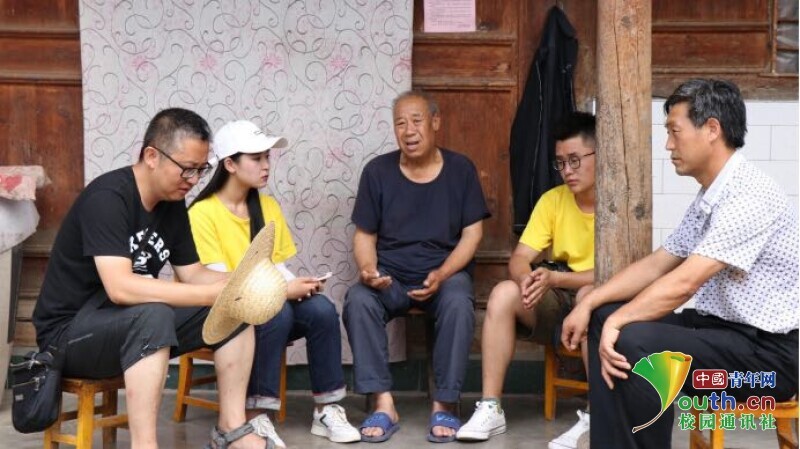 郝润后老人为实践队员们讲述蒲陈药材种植发展历程。中国青年网通讯员 王琳 摄