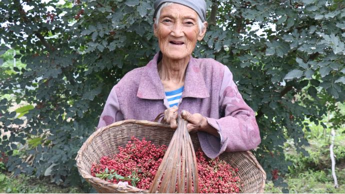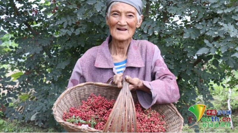 蒲彩凤老人展示今年收获的花椒。中国青年网通讯员 王琳 摄