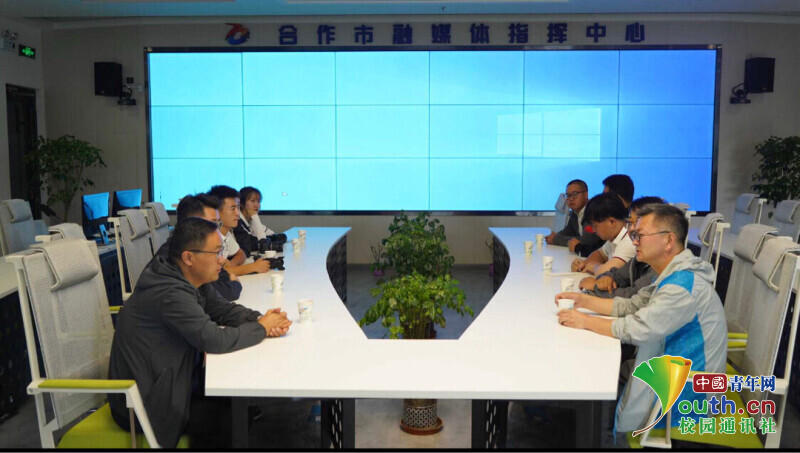 图为实践团一行与合作市融媒体中心的工作人员展开座谈。中国青年网通讯员 陶冶 摄
