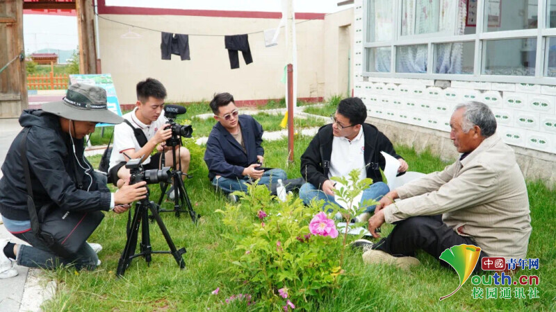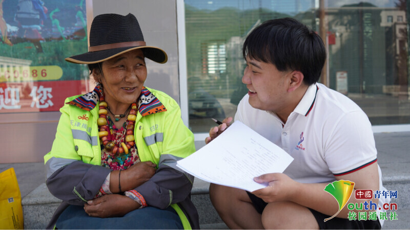 实践队员李培杰在碌曲县街头采访藏族群众。中国青年网通讯员 徐臻熙 摄
